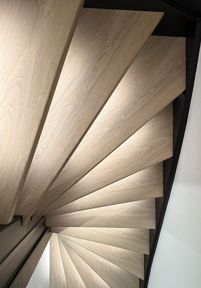 Duurzaamheid en Kwaliteit: Wij maken uitsluitend gebruik van hoogwaardige materialen die erkend en bekend zijn en bedoelen voor traprenovatie. De bekende merken van pvc, pvc met profielen, laminaat of eikenhout trapbekleding, die zowel esthetisch aantrekkelijk als duurzaam zijn. Hiermee investeert u in een trap die langdurig zijn pracht behoudt. Onze ervaren monteurs zorgen ervoor dat een traprenovatie in binnen รฉรฉn dag geklaard is, zelfs bij een standaard trap of met Led-verlichting.