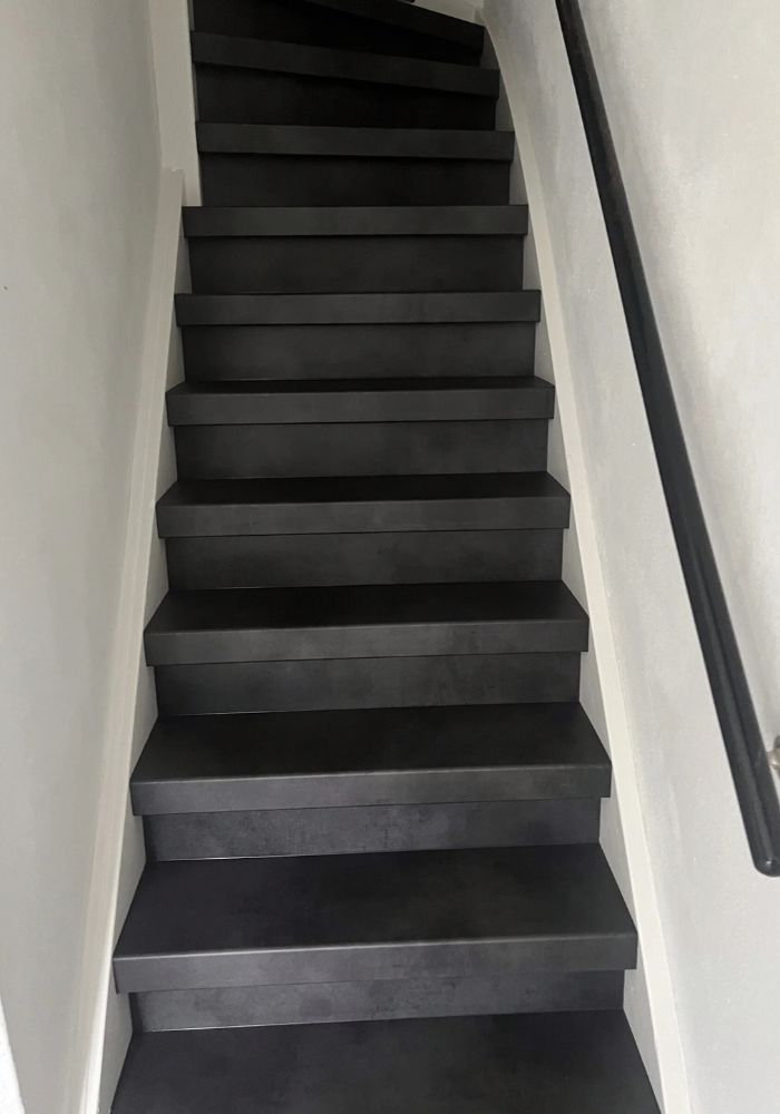 Geef je trap een nieuwe uitstraling met Black, de perfecte keuze voor traprenovatie. Deze elegante donker/zwart kleur heeft een koele, betonachtige ondertoon en een subtiele gemêleerde structuur die elke ruimte transformeert. De diepe tint van Black straalt kracht en moderniteit uit, terwijl de natuurlijke textuur een stoere, industriële uitstraling biedt. Ideaal voor diegenen die een gedurfde statement willen maken in hun interieur. Kies voor Black en maak van jouw trap een eyecatcher!