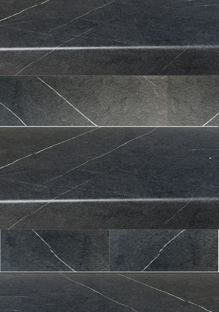 Een moderne matzwarte betonkleur met verfijnde witte marmeraccenten die diepte en contrast toevoegen. De matte afwerking benadrukt het stoere, industriรซle karakter, terwijl de subtiele witte adering zorgt voor een minimale luxueuze, eigentijdse uitstraling. Perfect voor interieurs die kracht en elegantie willen combineren.